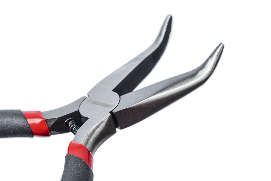 Мини длиногубцы изогнутые — слесарный инструмент для работы с мелкими деталями и комплектующими. Применяются для фиксации крепежа, загиба и выравнивания проволоки или узких пластин.
