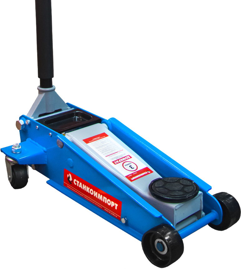 Подкатной гидравлический домкрат имеет ручной привод и предназначен для подъема машины при осуществлении ремонтных работ — к примеру, замены колес. Он отлично подойдет для личного использования на даче, в гараже или для работы на небольшой шиномонтажной станции.