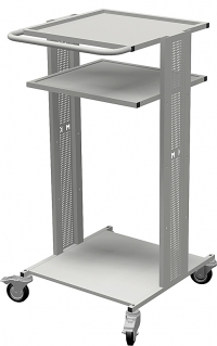 Имеет возможность горизонтальной и вертикальной установки системного блока, регулируется в 3 положениях по высоте полки (шаг 250мм), возможна установка тумб серии Стандарт, все колеса поворотные и 2 из них с тормозом, покрыта порошковой покраской. Габаритные размеры – 600х500х1010h Масса нетто/ брутто  17,7/20 кг  V-0,3куб. Допустимая нагрузка на тележку до 200кг, допустимая нагрузка на полку до 80кг